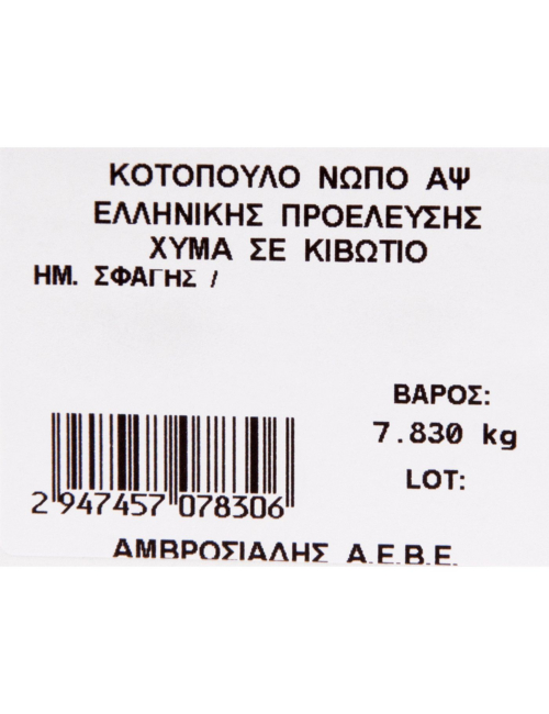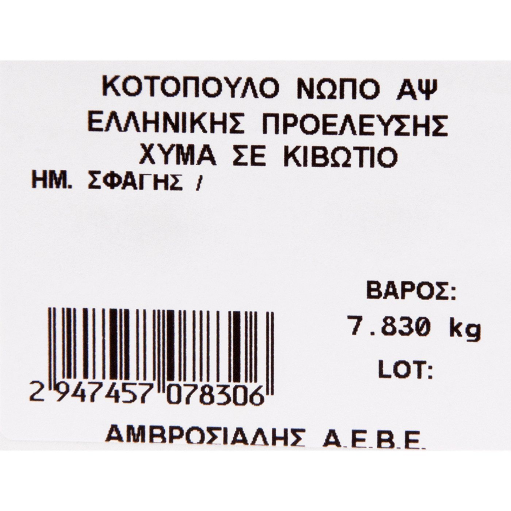 Κοτόπουλο ΑΜΒΡΟΣΙΑΔΗ ολόκληρο νωπό χύμα εγχώριο (~13kg)