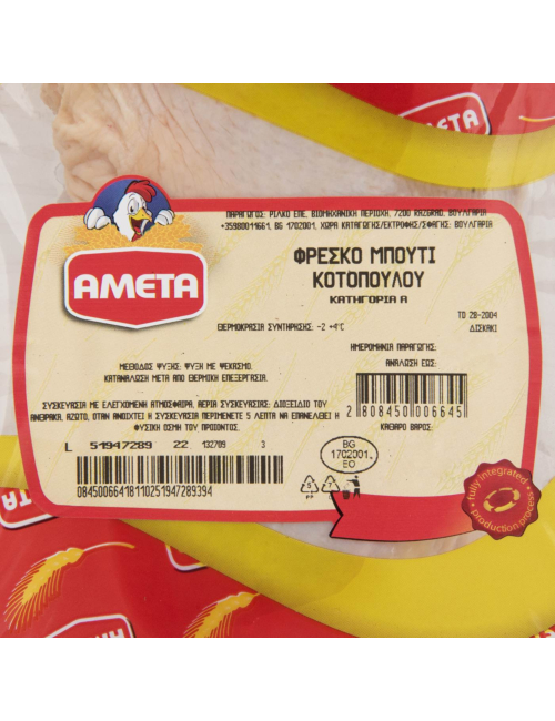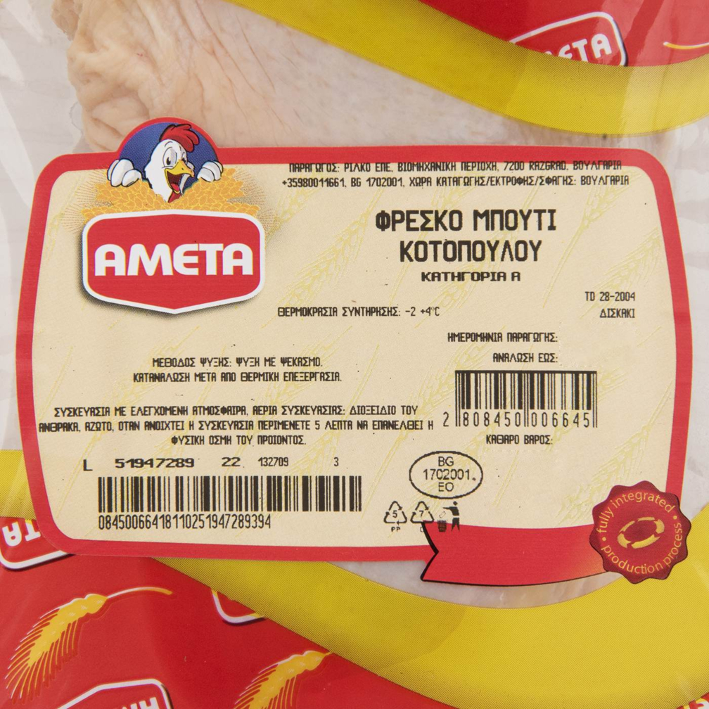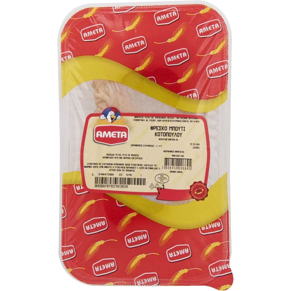Κοτόπουλο AMETA μπούτι νωπό σε συσκευασία τροποποιημένης ατμόσφαιρας Βουλγαρίας (~1kg)