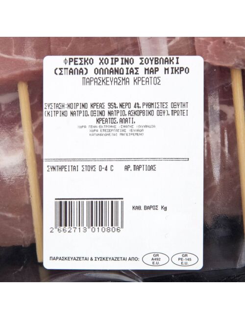 Χοιρινό σουβλάκι ΚΑΡΥΛΑΚΗΣ σπάλα νωπό σε συσκευασία προστατευτικής ατμόσφαιρας (~1kg)
