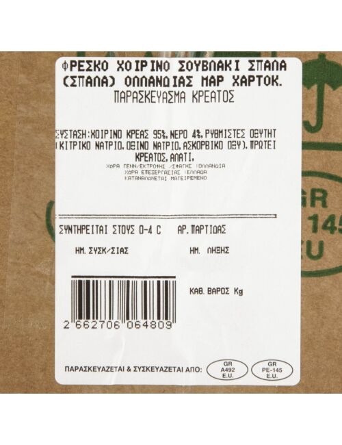Χοιρινό σουβλάκι ΚΑΡΥΛΑΚΗΣ σπάλας νωπό σε κιβώτιο (~6kg)