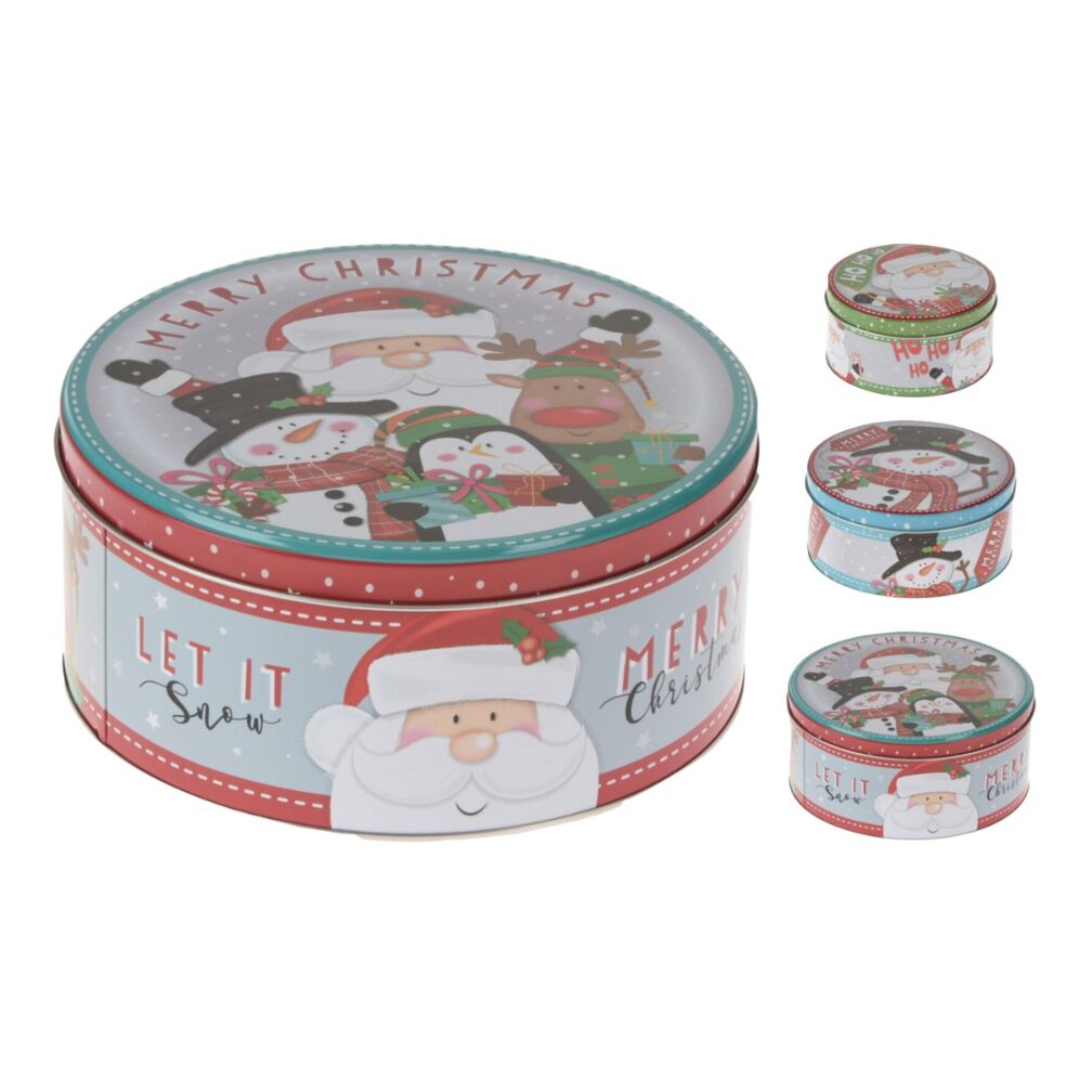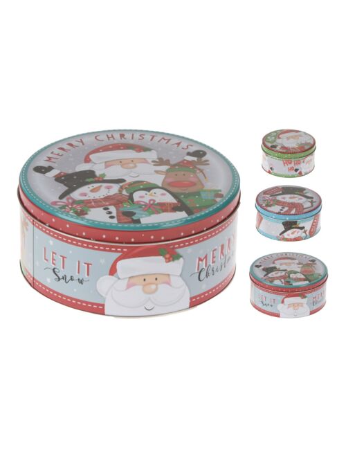 Χριστουγεννιάτικα μεταλλικά κουτιά στρογγυλά 3τεμ.